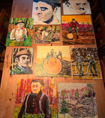 The mobile gallery parked at the Prince of Wales Northern Heritage Centre for the flashlight farewell tours of Walt Humphries exhibition at the Museum. In the Mobile Gallery we exhibited never-seen-before pen and inks of Walt's, alongside paintings by BC based artist Jaret Penner in a fun lil show called BUSH WHACKED.